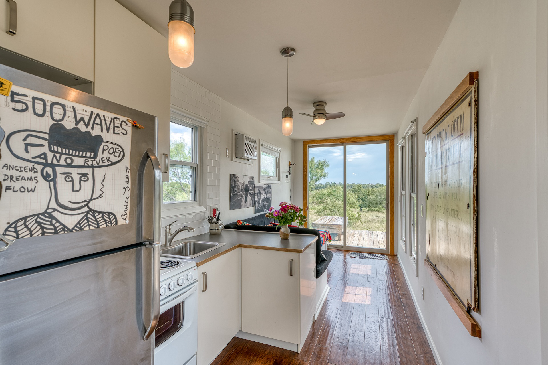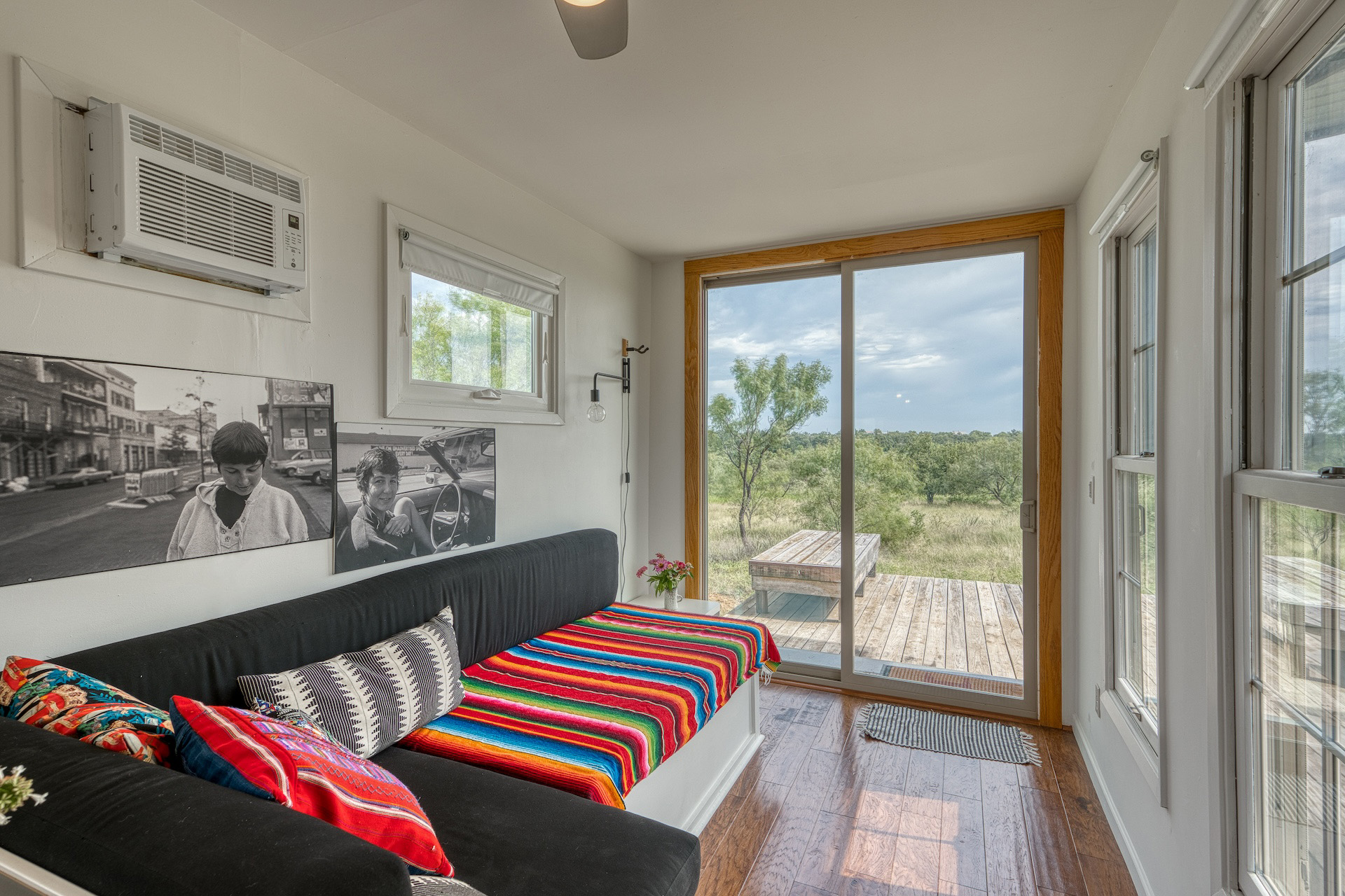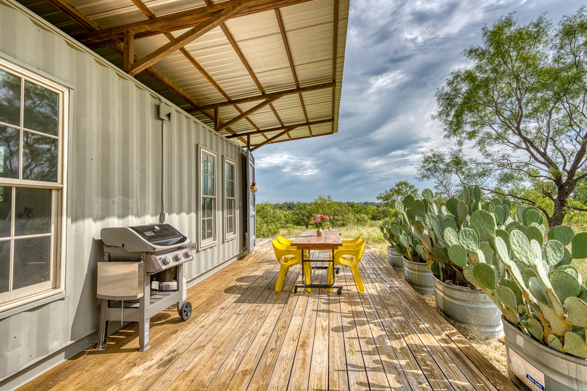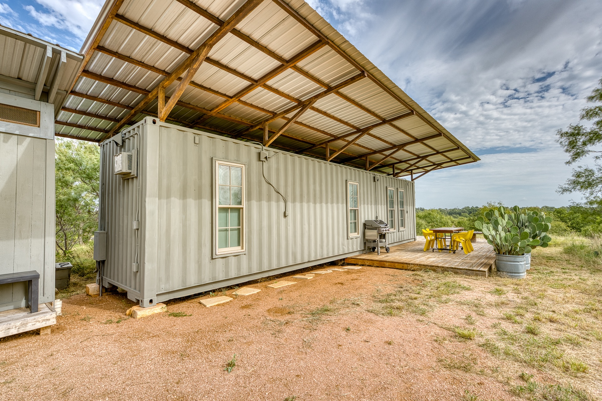 Unique and Income-Producing Llano River Retreat: Riverfront Llano River cabin with highly reviewed camping business makes it affordable to own on the river. Incredible 1.1 acre riverfront property with direct and easy river access for tubing, fishing, and river sitting on one of the prettiest and most private parts of the Llano River. Well maintained trails and fire pit make it easy to enjoy nature. Shipping container cabin has secure lock-and-leave ease and features 300 square feet of air-conditioned space with living room with river view, kitchen, one bedroom, and one bathroom. Huge roof and deck with bench and tables maximize afternoon shade and wind to ensure pleasant mornings, cool afternoons, and starry nights. Additional bathhouse with sink and toilet allows property to function as a successful and well-reviewed self-check in campground earning $100 per night just to camp or park an RV. Sale includes 500waves.com website and Hipcamp property listing. Cabin has additional potential as a short-term riverfront rental. Covered parking for car, boat, or RV. New septic installed 2019. No damage during floods of 2018 and 2025 and no restrictions.