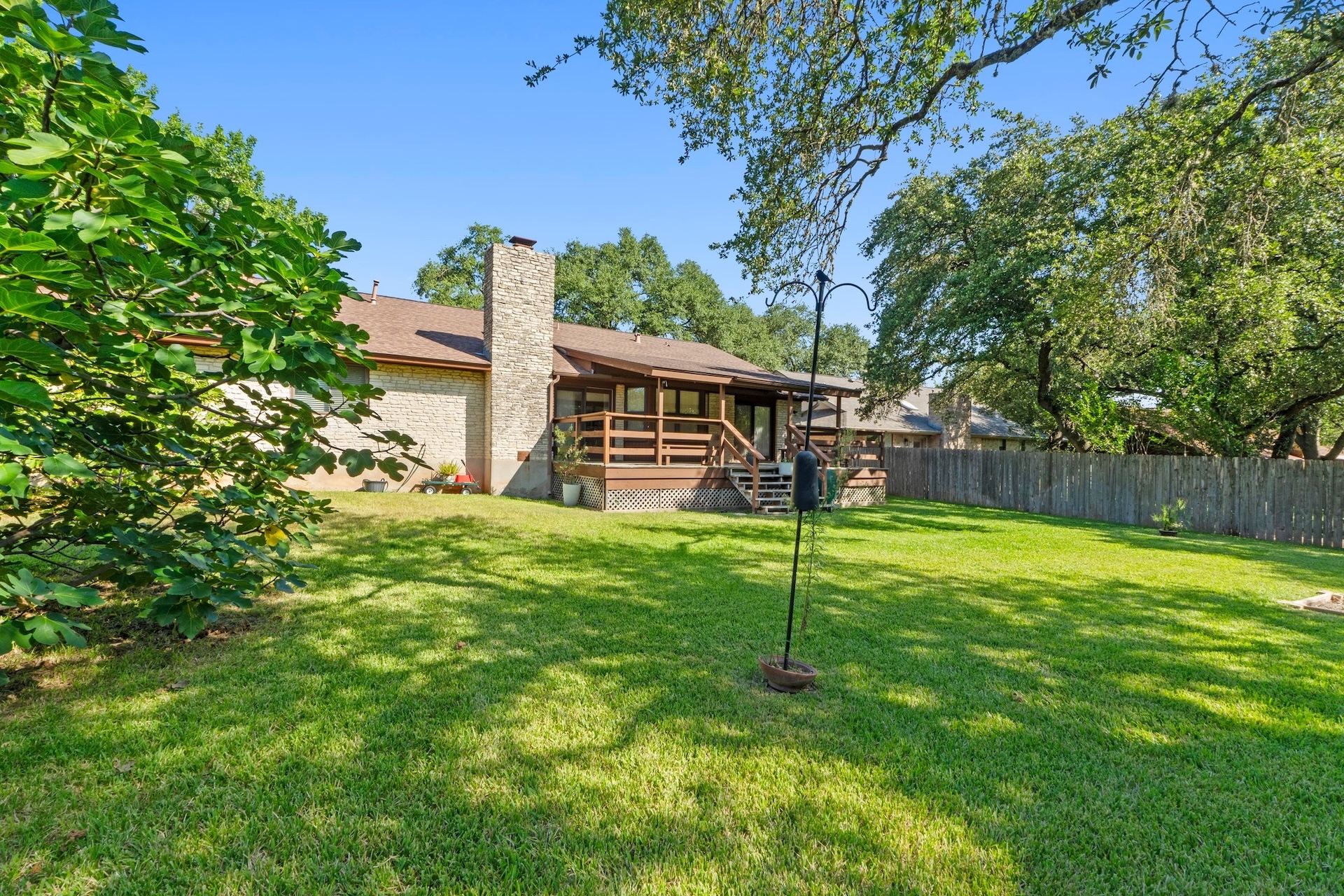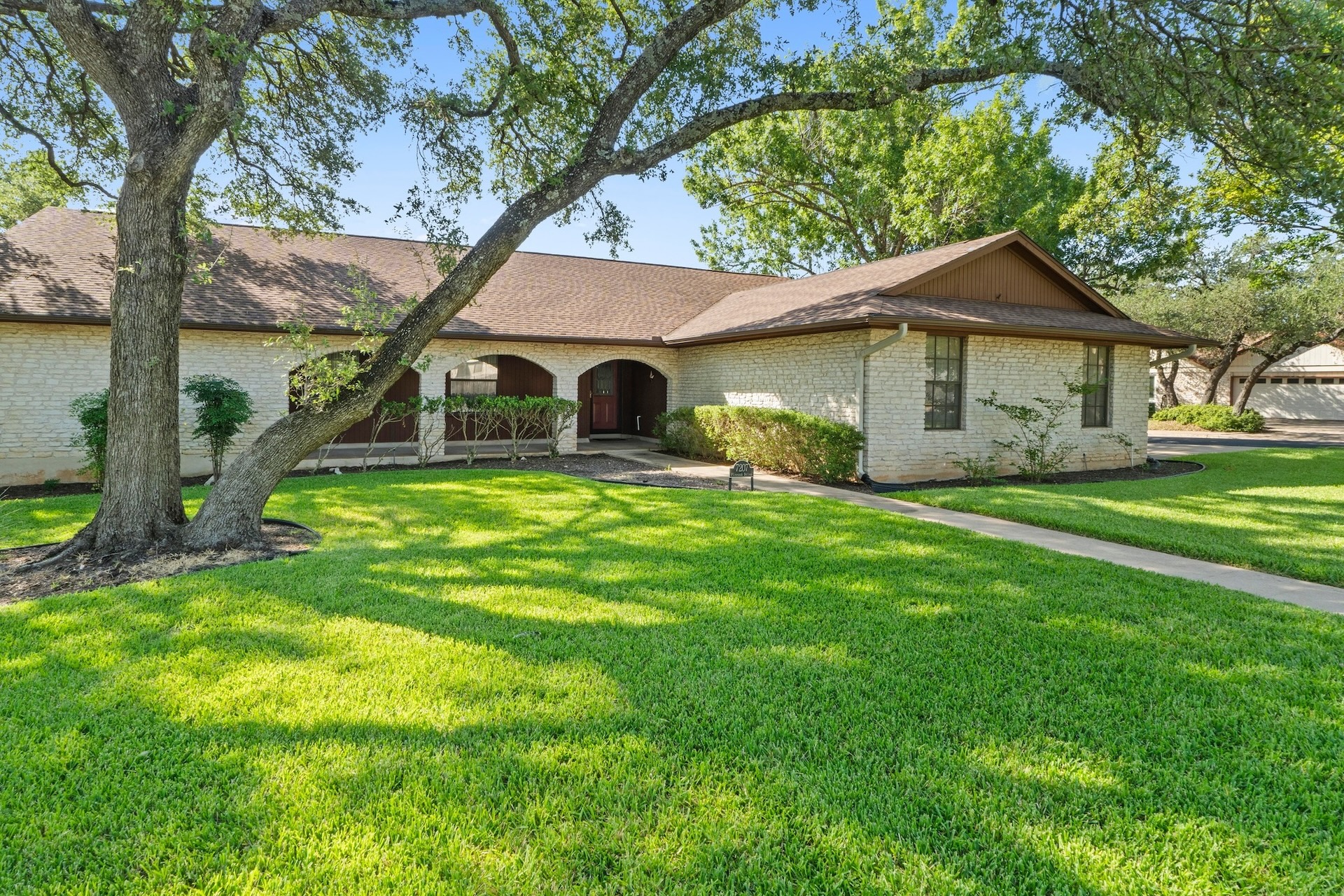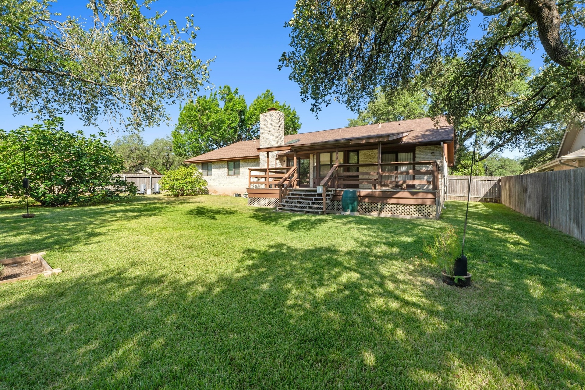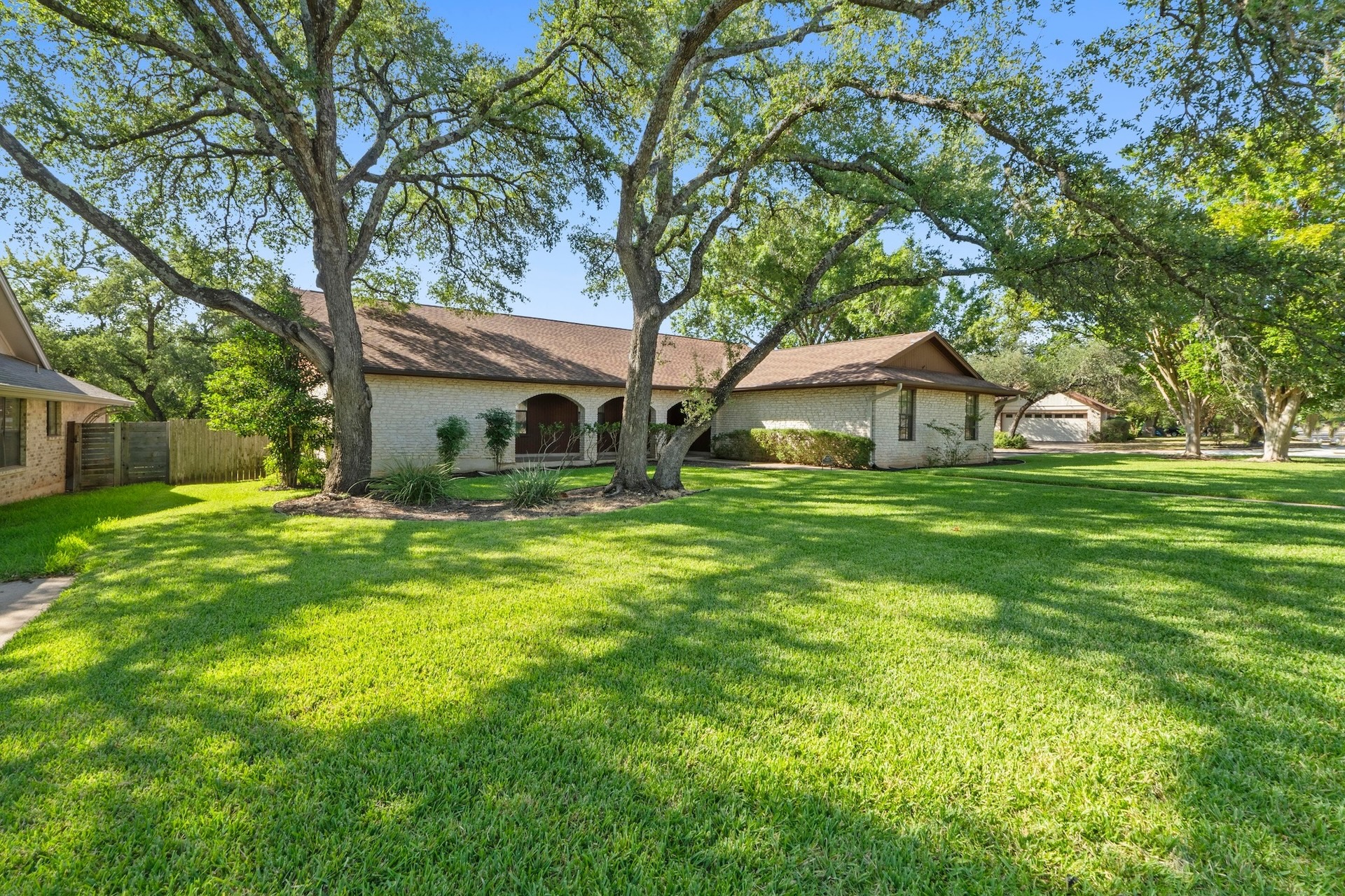 Single-story ranch-style 4/2 situated on an oversized .31-acre lot in the treasured Oak Forest neighborhood. Lovingly cared for by one owner, this stunning corner lot is a showstopper, with large trees, lush lawn, and a side entry double garage. Inside the home, a spacious living room is illuminated by a bright skylight within the cathedral ceiling and is complemented by a stone fireplace and sliding doors leading out to a large outdoor deck – an ideal gathering place for friends and family. The deck leads to an expansive backyard retreat where there’s plenty of space for a playscape, a garden plot, or a pool. An automated irrigation system ensures the landscape remains lush. The generous primary suite features a double vanity and large walk-in closet as well as a cozy sitting area that looks on to the back deck and yard. The suite is separated from the other bedrooms by a sunny breakfast nook and kitchen. A huge formal dining room connects to the kitchen and can be used as is or transformed into a home office or game room. The area also features the highly-rated RRISD, including Caraway Elementary, Canyon Vista Middle, and Westwood High which provides access to the International Baccalaureate Program. Nearby Oakview Neighborhood Park offers walking trails, playscapes, dog play groups, and tennis courts. Easy access to 183 and multiple shopping spots, including Whole Foods and Trader Joe’s.