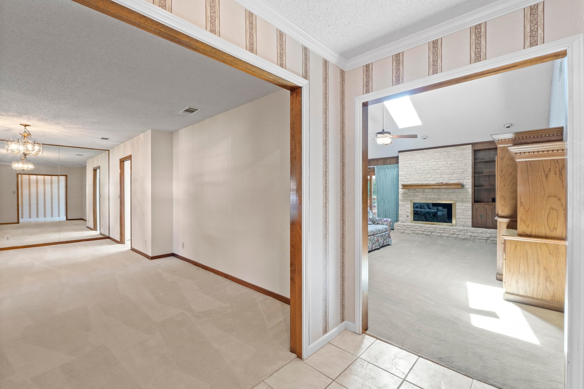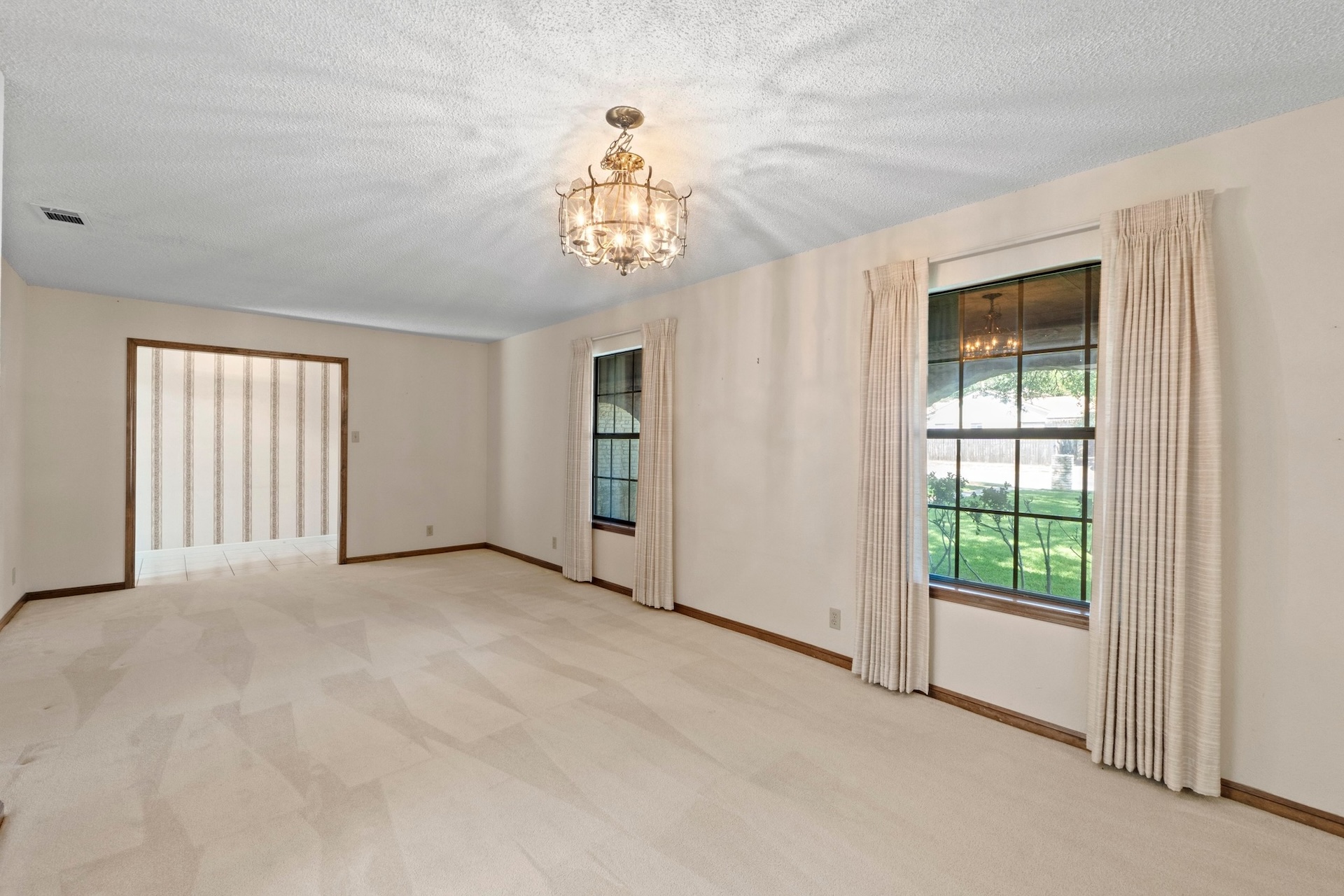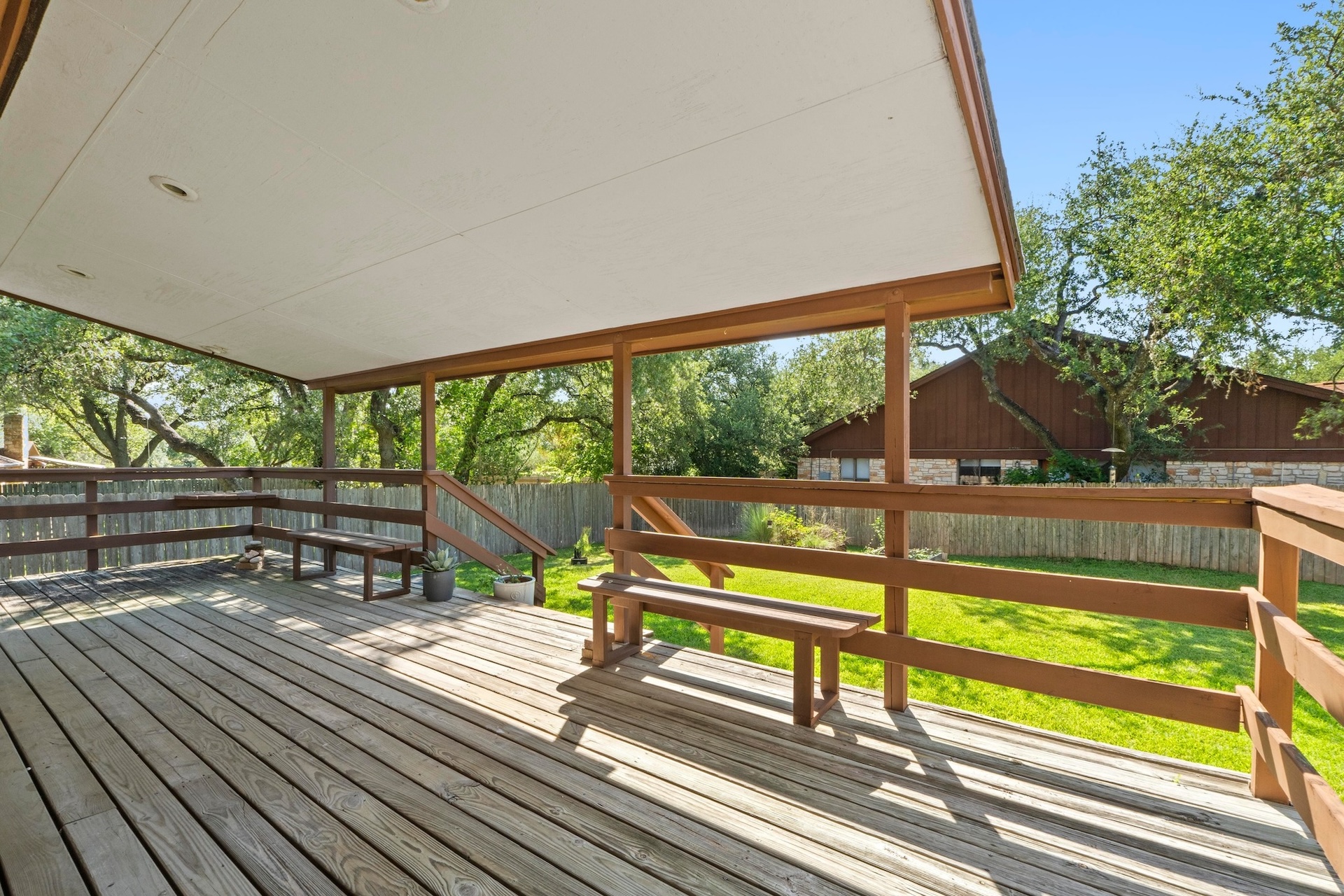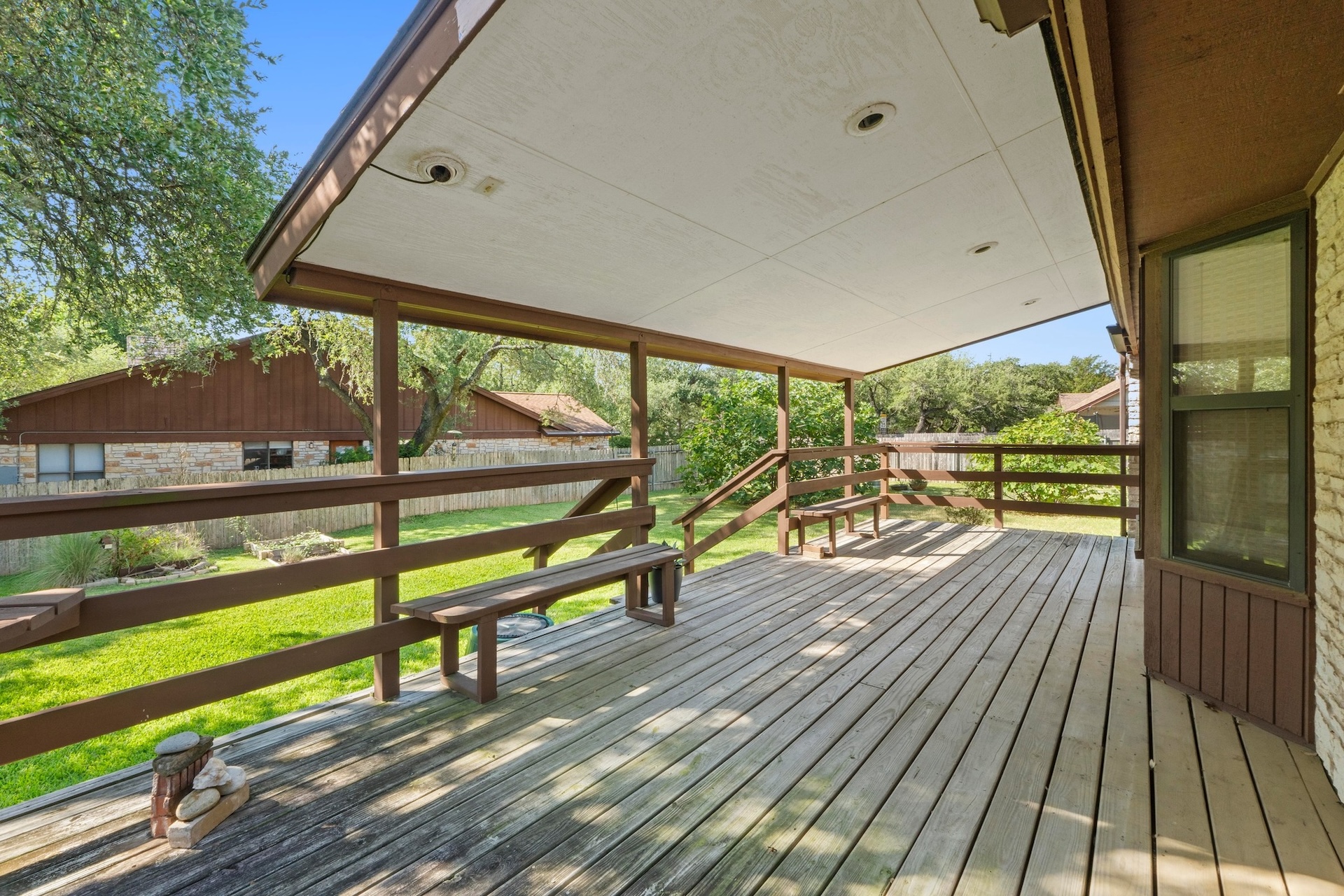 Single-story ranch-style 4/2 situated on an oversized .31-acre lot in the treasured Oak Forest neighborhood. Lovingly cared for by one owner, this stunning corner lot is a showstopper, with large trees, lush lawn, and a side entry double garage. Inside the home, a spacious living room is illuminated by a bright skylight within the cathedral ceiling and is complemented by a stone fireplace and sliding doors leading out to a large outdoor deck – an ideal gathering place for friends and family. The deck leads to an expansive backyard retreat where there’s plenty of space for a playscape, a garden plot, or a pool. An automated irrigation system ensures the landscape remains lush. The generous primary suite features a double vanity and large walk-in closet as well as a cozy sitting area that looks on to the back deck and yard. The suite is separated from the other bedrooms by a sunny breakfast nook and kitchen. A huge formal dining room connects to the kitchen and can be used as is or transformed into a home office or game room. The area also features the highly-rated RRISD, including Caraway Elementary, Canyon Vista Middle, and Westwood High which provides access to the International Baccalaureate Program. Nearby Oakview Neighborhood Park offers walking trails, playscapes, dog play groups, and tennis courts. Easy access to 183 and multiple shopping spots, including Whole Foods and Trader Joe’s.